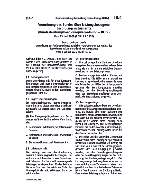 Verordnung des Bundes über leistungsbezogene Besoldungsinstrumente