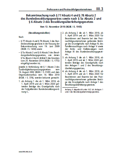 Bekanntmachung nach § 77 Absatz 4 und § 78 Absatz 2 des Bundesbesoldungsgesetzes sowie nach § 5a... mehr